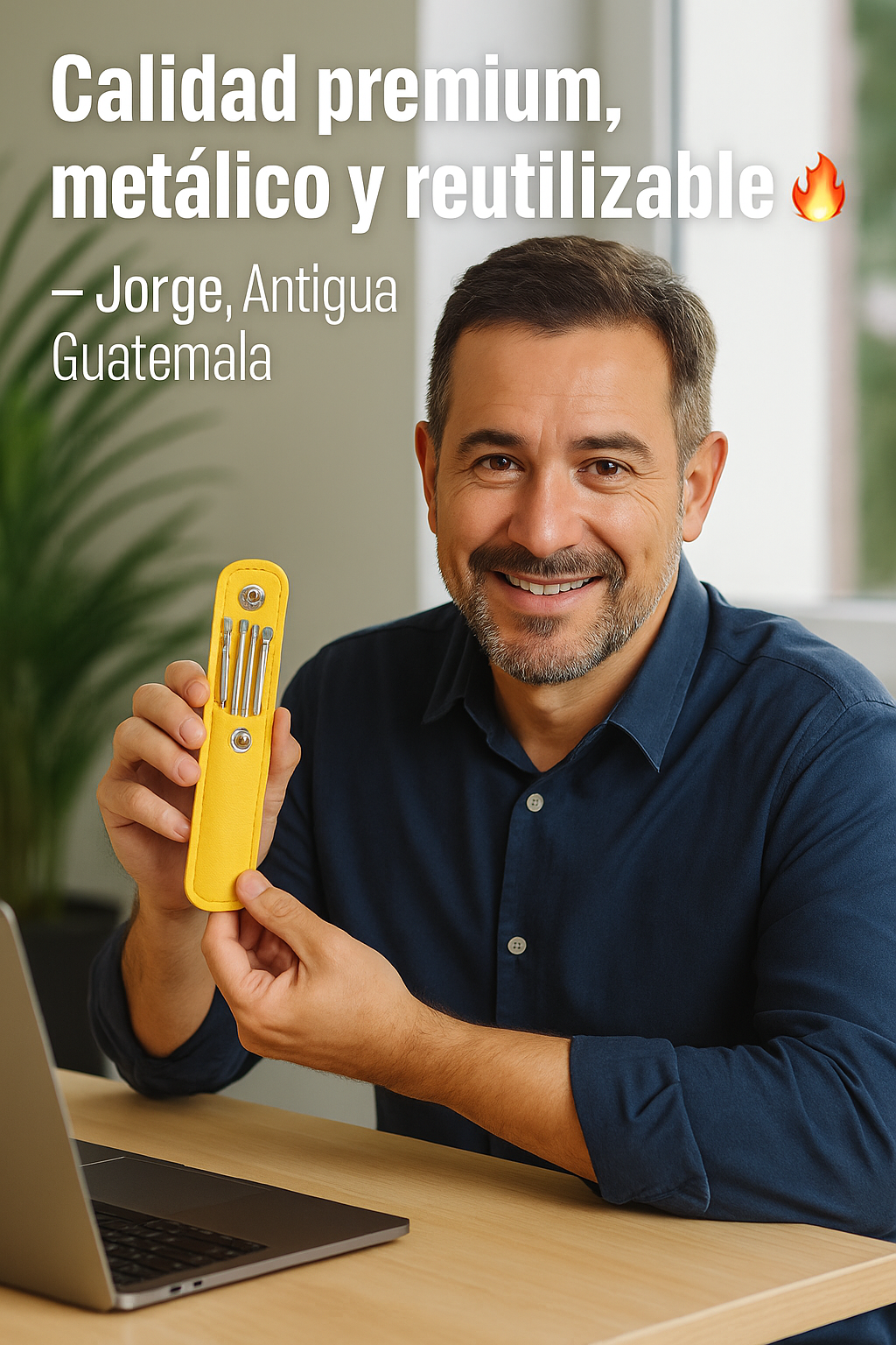 Fabricado con acero inoxidable de grado médico, resistente a la humedad y la corrosión. Cada pieza está pensada para durar años.